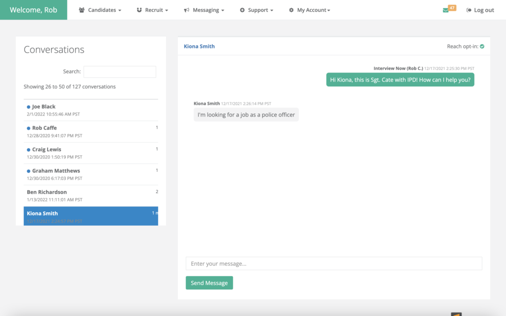 "Interview Now is a huge force multiplier for police recruiters. I'm the only full time recruiter for an agency that receives hundreds of applications and contact requests each year. Interview Now allows me to deliver the high-touch experience that today's applicants expect while still having time left in the day to get the rest of my work done."
